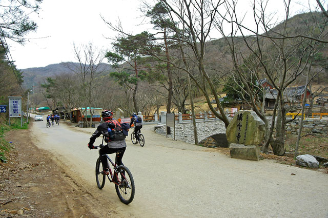 오늘의 라이딩코스는 실제 시합당일의 코스와 동일하게 돌아본다. 답사가 목적인지라 사전코스 눈도장을 찍기 위함이다. 42Km를 평이할거라 생각하고 시작한 답사인데 남쪽 아산에 위치한 광덕산이 호락하진 않았다. 강당사입구를 지나고 있다.