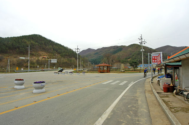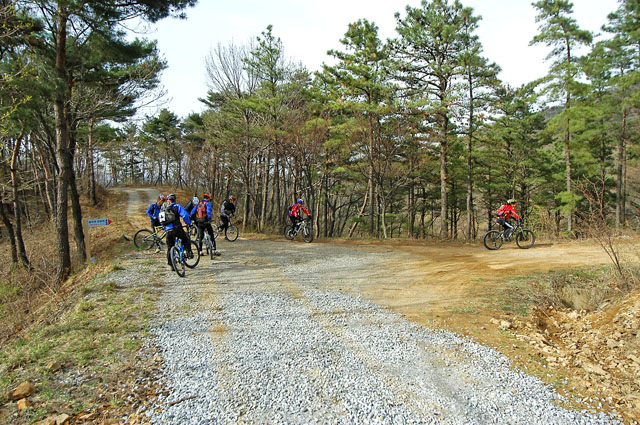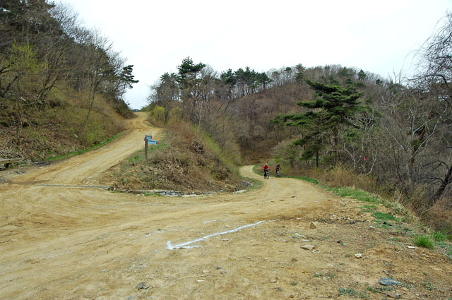 벌떡업힐이 끝나고 삼거리가 나타나는데 우리는 직진을 한다. 나중에 안 사실이지만 시합당일에는 좌회전을 해야 한다. 직진을 하면 내려갔다 올라야 하고 왼쪽으로 진행했다면 산을 하나 넘어 내려와야 했다. 어쨋든 어떤길로 가던지 결국 한장소에서 만나게 된다.