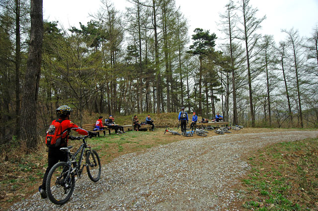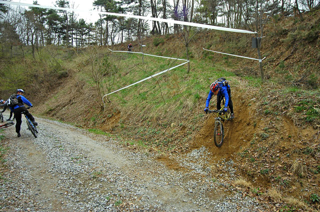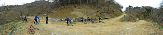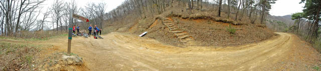 임도중간에 대회당일 다운힐 시점으로 사용될 포인트 지역이다. 이곳을 지나 직진하면 아까 임도 순환 종점 삼거리에 이르지만 시합때는 직진하지 않고 좌회전하여 딴힐지역을 내려가야 한다. 돌덩어리가 많은 지역이긴 하지만 딴힐코스는 그다지 험하지 않다. 무리만 하지 않아도 시합종점까지 1분여만에 내려갈 수 있다.