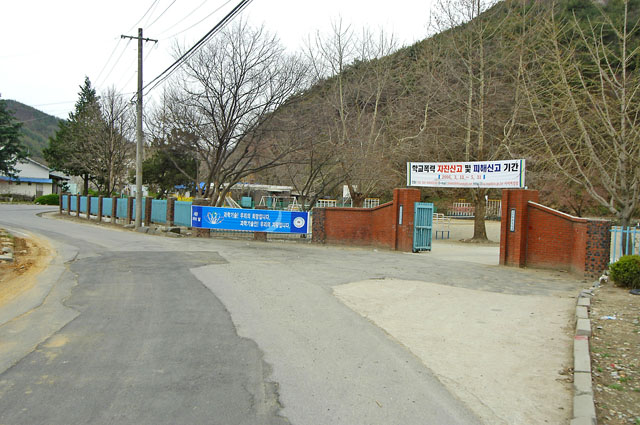 오른쪽으로 가다보면 보신원초등학교 정문이 보인다. 정문을 지나 계속 가면 된다.