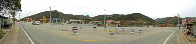 광덕리 방향으로 가는 삼거리 파노라마 사진이다. 우측으로 진행해야 한다. 사진이음새가 매끄럽지 못하다.^^