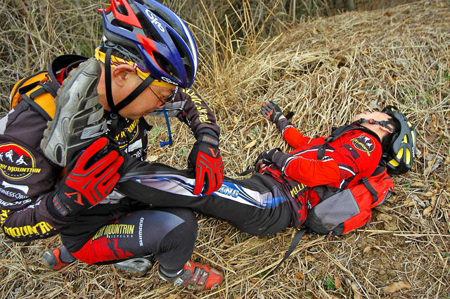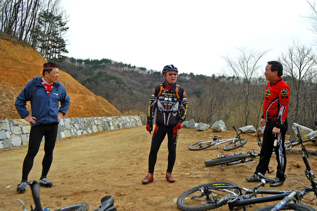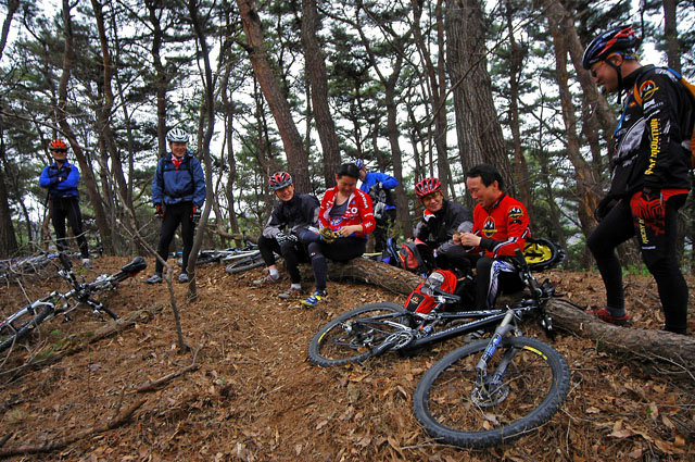 오늘 대회 사전답사차 서울에서 버스타고 오신 5학년분이다. 대단한 고수임에 틀림없다. 헬기장2에 올라오셔서 우리에게 버터캔디 하나씩을 베푸신다. 잠깐 같이 라이딩에 동행했는데 모두가 포기한 싱글업힐을 여유있게 치고 올라가신다. MTB초창기 시절부터 타셨다니 그 연륜이 어디 가겠는가? 이번 잔차가 4번째라고 하신다. 잔차로 건강을 얻으셨다고 하니 정열이 남다르다. 아마도 나도 5학년차에 접어들면 이분과 같은 길을 걷고 있으리라..^^