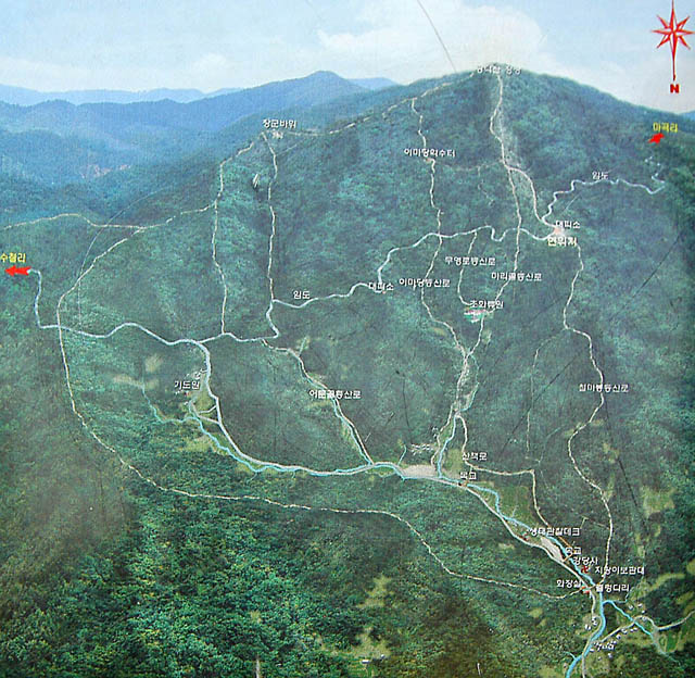 가다가 나타나는 삼거리에서 직진하면 안된다. 마곡리로 내려서는 불상사가 생길 수 있다. 계속 임도를 따라 우회전 해야 한다.