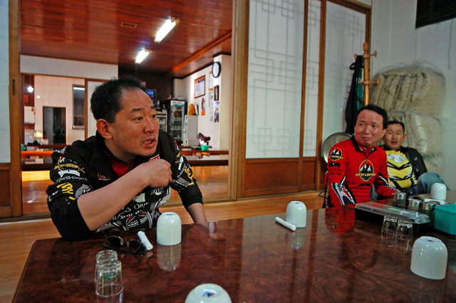 오늘 라이딩의 라이벌들이 예민하게 신경전을 벌인다. 오늘 자리에는 없지만 이변호사님까지 포함한 아래 네분들이 서로가 같은 레벨로 위안을 삼으시는 분들이다. 하지만 정작에 요즘 잘나가시는 정선생님이나 유세무사님은 서로를 경쟁상대로 인정하지 않으려 한다. 서로 몸좀 만들어 알샵스쿨 4기 오픈일에 도토리에서 한판을 약속한다.