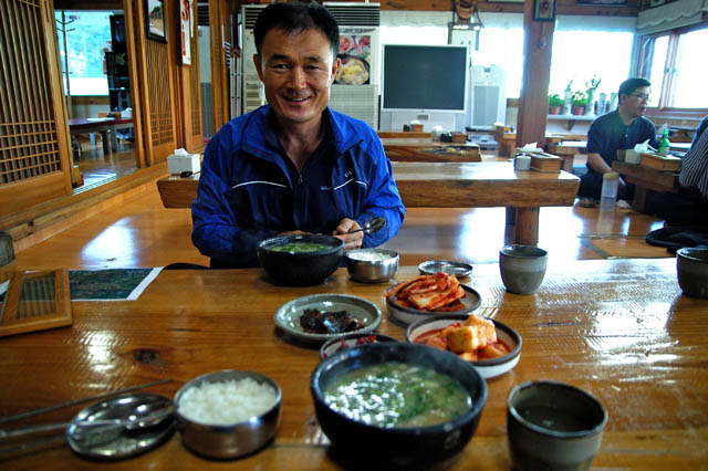 천마산 곰탕집에서 아침을 먹는다. 걸쭉한 곰탕국물이 오늘 대회를 위한 엑기스 같다.
