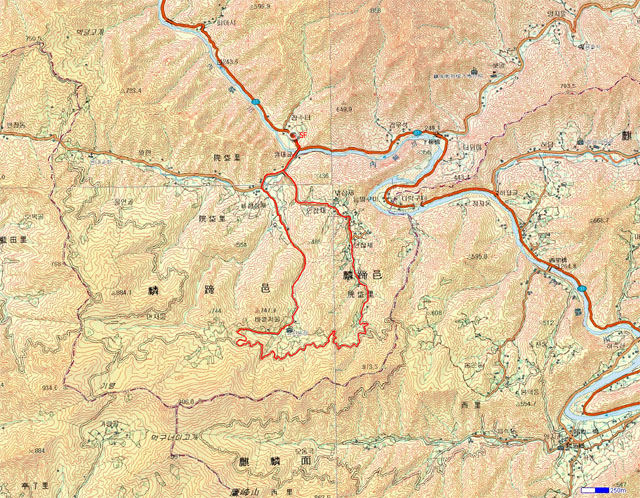 코스 답사를 해 본 결과 작년 코스는 지난 7월의 비 피해로 도저히 코스로 잡을 수 없어서 작년 우리가 민박했던 곳으로 올라가서 좌측 임도를 거쳐 초입의 다리로 빠져나오는 코스 즉 작년 스타트 한 곳에서 부터 약 1키로 정도에 있는 두 번째 다리로 좌회전하여 비교적 잘 닦여진 포장도로를 따라 꽤 올라감. 그리고 임도와 만나는데 여기서 좌회전하여 임도를 거쳐 나오면 넓은 포장도로가 나오고 첫 번째 다리로 빠져나와 우회전 하여 원대교로 회기하는 코스로 바꿨슴. 물론 토욜날 미리가서 사격 연습하고 코스 답사 하면 작전이 설 것이지만 작년보다 다운힐 길 상태가 매우 양호하고 경사가 별로 없어서 다운힐 보다 업힐에 신경쓰고 타이어는 얇고 좁은 게 좋겠고 그래서 반드시 하드테일을 준비함이 낫다고 봄.