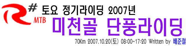 [후기] R# MTB 토요정기라이딩 2007년 미천골 순환 2007년 10월 23일 빨간색 제목링크를 클릭하시면 새창이 열립니다. R# MTB 2007년 미천골 순환 즐감하십시오..^^