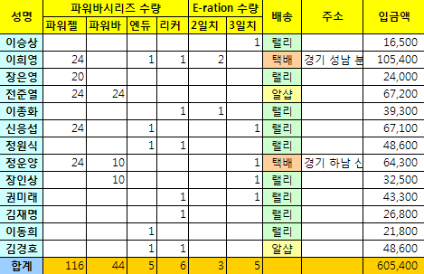 파워바 10개, 이레이션 3일치팩 1개, 랠리때 수령합니다.32,500원 입금합니다.