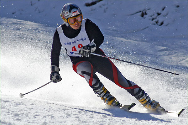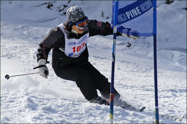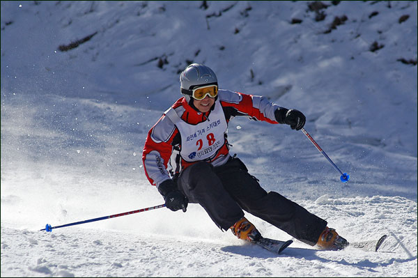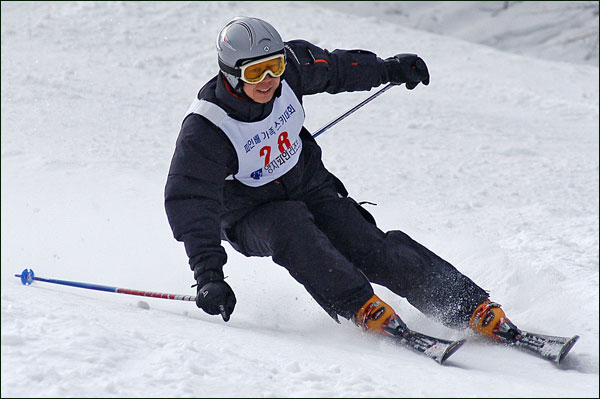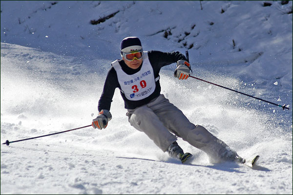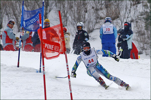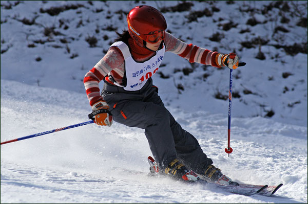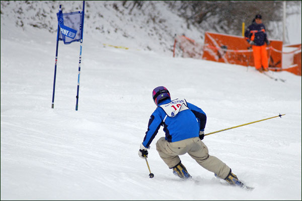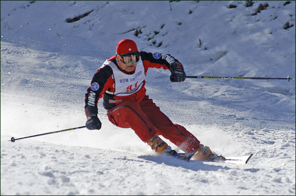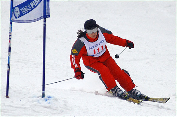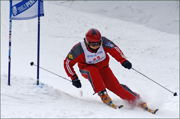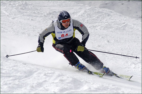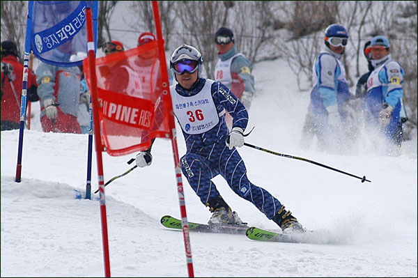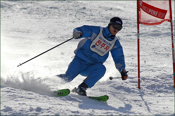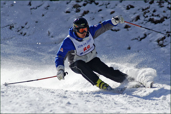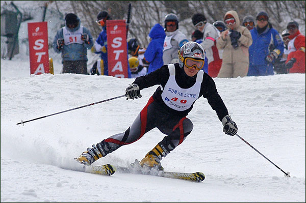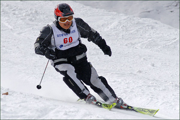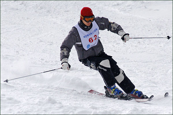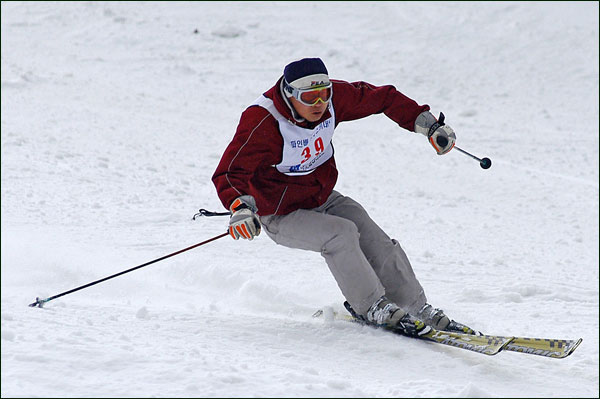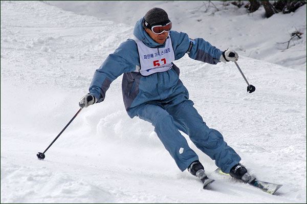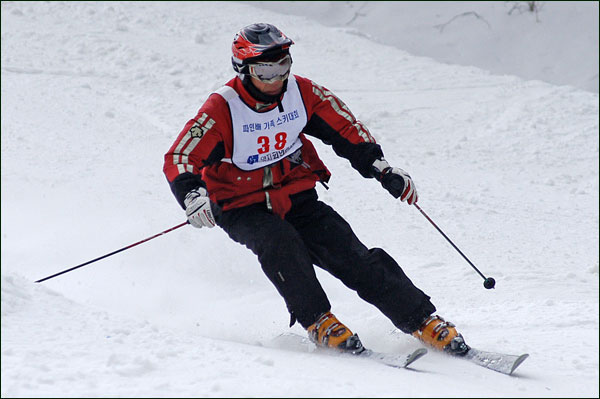 대회당일 아침에 눈발이 제법날렸다. 대회 시작시점까지도 계속 눈이 내리다 시작하면서 눈이 그친다. 신기한 일이다. 하지만 쌓인눈이 제법되어 선수들은 다소 어려움을 겪었다. 정설상황에다 코스가 그다지 친절하지는 않았기 때문이다. 운영요원들이 나름대로 고르기 작업(일명:나라시)를 해보지만 쌓인눈을 모두 정리하기에는 역부족이었다. 하지만 출전 남녀 선수들의 투지는 그 어려움속에서도 빛을 발했다. 이번대회 참가자격은 양지회원, 시즌권소지자에 한했다. 그에 따른 출전선수층은 얇았으나 양지회원분들이 깡이 좋으셨다. 사진을 보면 한결같이 괴성에다 이를 악문 모습들이 많았다. 물론 폼도 좋으시고..^^ 아마추어 경기지만 경기내내 스키날로 얼음 갈아내는 소리가 소름끼칠 정도로 섬찟하게 느껴졌다. 챌린지 슬로프 계곡에 날가는 소리와 응원함성소리가 공명이 되어 울린다. 대회의 현장감이 바로 이런것이리라.