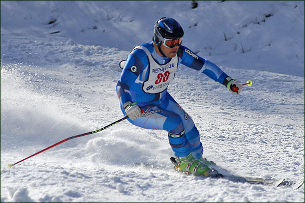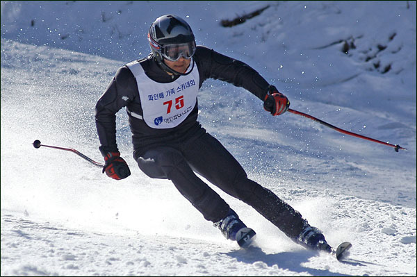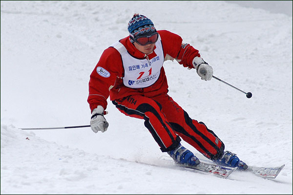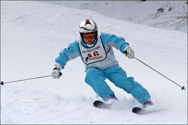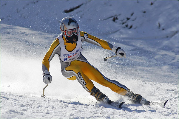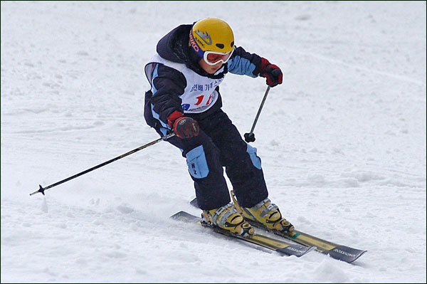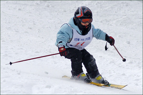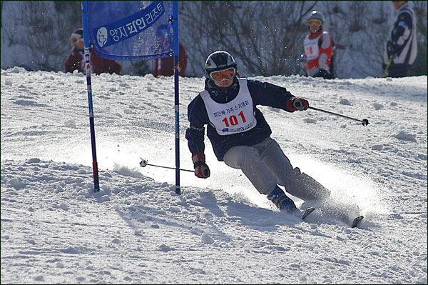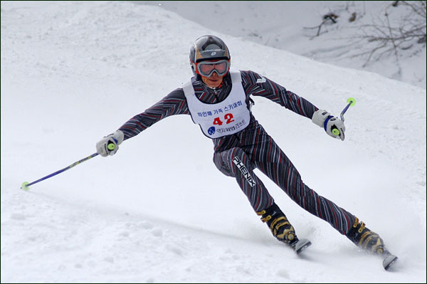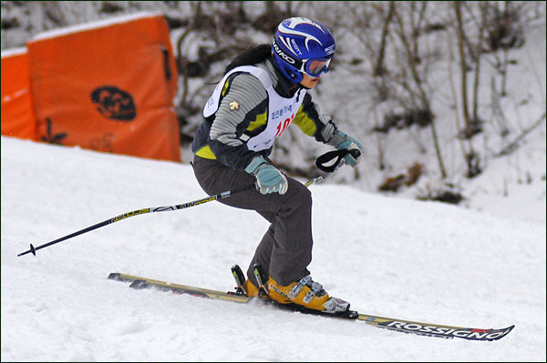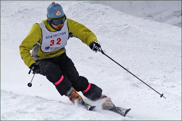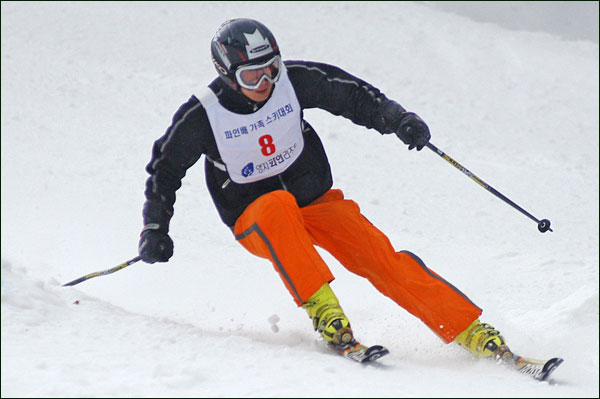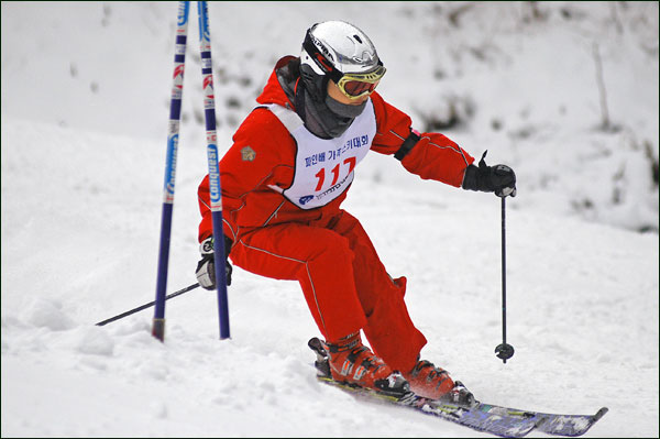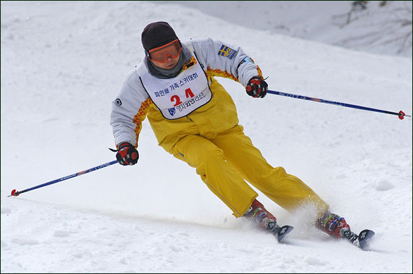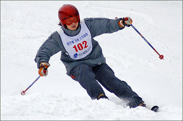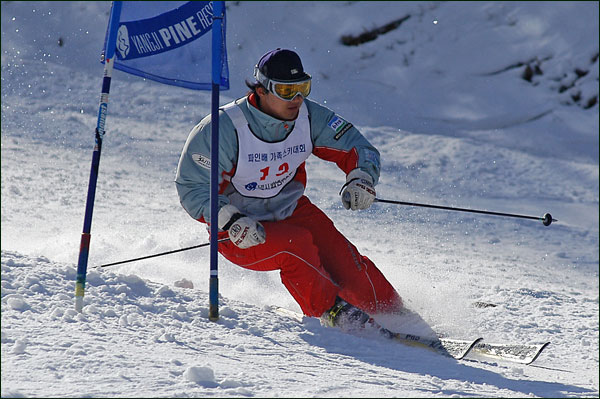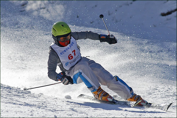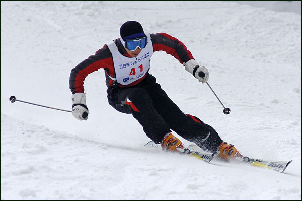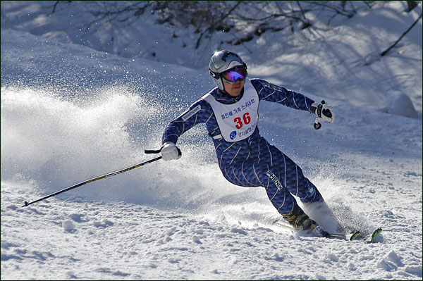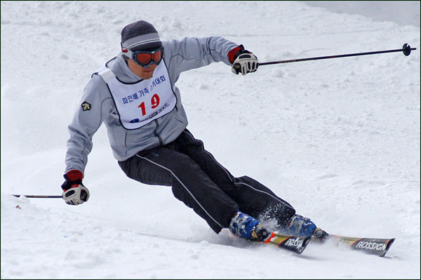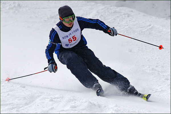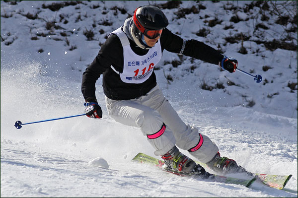 대회당일 아침에 눈발이 제법날렸다. 대회 시작시점까지도 계속 눈이 내리다 시작하면서 눈이 그친다. 신기한 일이다. 하지만 쌓인눈이 제법되어 선수들은 다소 어려움을 겪었다. 정설상황에다 코스가 그다지 친절하지는 않았기 때문이다. 운영요원들이 나름대로 고르기 작업(일명:나라시)를 해보지만 쌓인눈을 모두 정리하기에는 역부족이었다. 하지만 출전 남녀 선수들의 투지는 그 어려움속에서도 빛을 발했다. 이번대회 참가자격은 양지회원, 시즌권소지자에 한했다. 그에 따른 출전선수층은 얇았으나 양지회원분들이 깡이 좋으셨다. 사진을 보면 한결같이 괴성에다 이를 악문 모습들이 많았다. 물론 폼도 좋으시고..^^ 아마추어 경기지만 경기내내 스키날로 얼음 갈아내는 소리가 소름끼칠 정도로 섬찟하게 느껴졌다. 챌린지 슬로프 계곡에 날가는 소리와 응원함성소리가 공명이 되어 울린다. 대회의 현장감이 바로 이런것이리라.