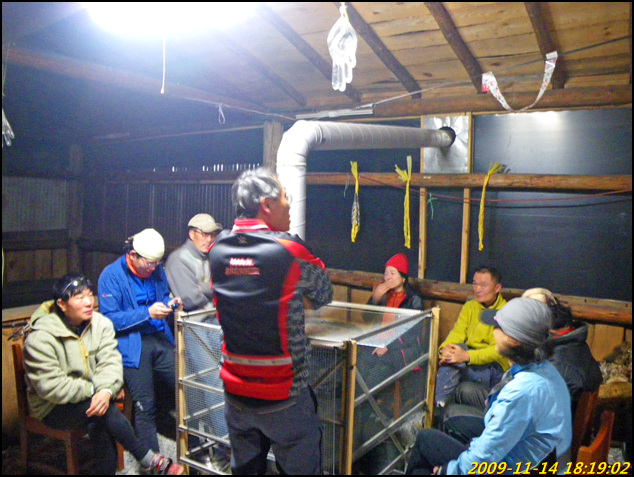 날씨가 쌀쌀한지라 식당중간에 있는 화목난로에 모두 둘러모여..