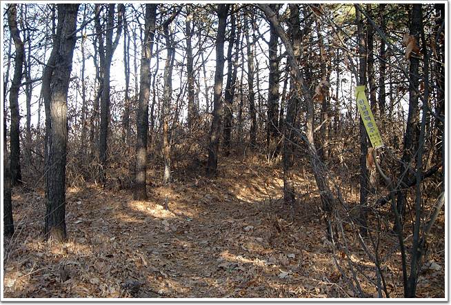 ↓요지점이 나타나면 도로를 횡단하여 직진하는 원정맥 능선이 아니라 좌측으로 보이는 능선으로 우회하는게 좋슴돠.