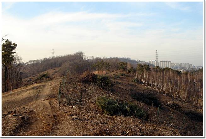 ↓윗 사진 철탑을 지나서 아랫사진 갈림능선이 나타나는 지점에서 독도에 주의해야 합니다. 직진하는 오른쪽 능선이 아니라 좌회전후 우회전해 진입하는 왼쪽 능선으로 가야함돠. 아랫사진은 구간을 완전히 통과한후 반대쪽에서 잡아본 검돠. ㅋㅋ 멀리 광명지맥 능선이 잘 보이는군요. 운흥산 구간만 연결시키면 시흥랠리코스보다 훨씬 박진감 넘치는 광명랠리코스가 완성되겠슴돠.^^