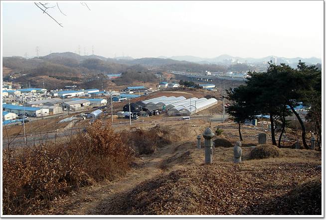 ↓무덤이 보이는 길로 편하게 진행하는게 좋슴돠. 멀리 정맥길이 잘 보이는 군요.