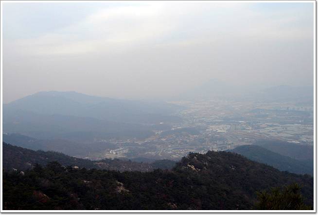 ↓ㅎㅎ 다시 산불감시탑을 오르다 과천 시내를 내려다 보았슴돠. 멀리 매봉이 보이네요. 우측으로 길게 뻗은 다운힐 능선이 입맛을 다시게 하네요. 지난번에 탄 곳임돠.^^