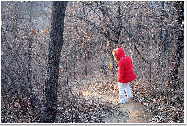 ↓철탑 앞 삼거리에선 우회전. 우회전하자마자 곧 싱글로 길이 바뀝니다. 종주코스 끝 지점인 광무정(국궁장)까지 계속 뚜렷한 싱글이 나있습니다.