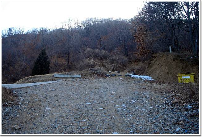 ↓사진 가운데 바닥에 폐타이어가 깔려있는 희미한 길로 계속 진행합니다. 조금 더 들어가면 뚜렷한 임도가 나있습니다.