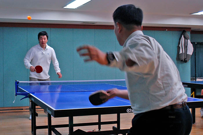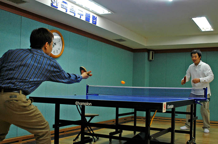 탁구클럽의 모습은 예전의 탁구장과는 사뭇 달랐다. 지하이긴 했지만 분위기가 상당히 매니아적인 모습을 띄고 있었다. 탁구를 치는 사람들의 동작도 일반인이긴 했지만 상당한 수준임을 한눈에 알 수 있다. 신발도 주고 락커도 있고.. 시대가 변하니 탁구장 문화도 변해있었다.
