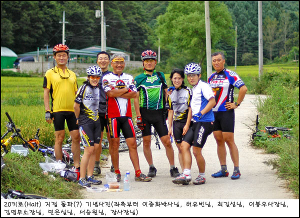농로옆 도로에서 다들 가지고온 간식과 부식을 서로 나누고 휴식을 취하면서 기념사진 한방찍었다.