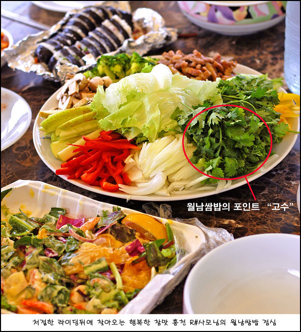알샵사모님의 특허인 월남쌈밥에는 고수라는 약초같은 야채가 반드시 들어가야 제맛이란다. 특유의 강력한 향으로 처음 먹는 사람의 경우 거부감이 강하다고 하나 베트남음식에는 항상 들어가는 향신료의 일종이고 몸에 좋다니 일단 먹고본다. 하지만 점점 먹을 수록 그향에 끌려 때문에 자꾸만 먹게된다. 중독성이 강한것 같다. 집에 와서도 그 향을 잊을 수가 없으니 말이다. 알샵주인장님께서는 매번 이렇게 풍성한 점심상이 소문날까봐 걱정하신다. 라이딩은 안하고 밥만 먹으러 올까봐. 언제나 넉넉한 R#의 오후가 그렇게 지나갔다. 오늘도 라이딩을 열심히 했음에도 어김없이 살이쪄서 돌아간다. ㅎㅎㅎ