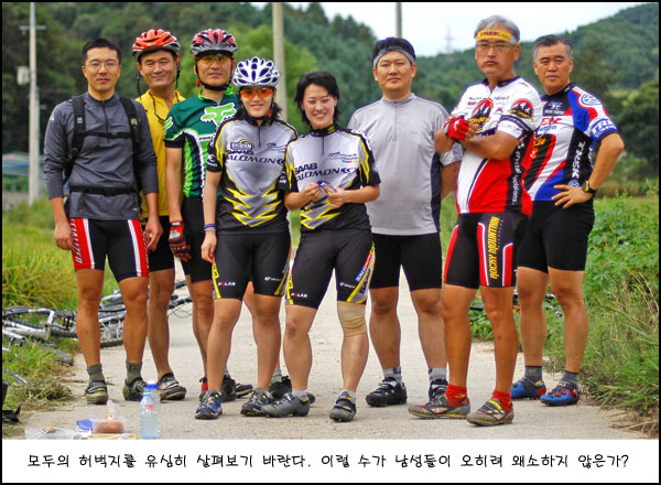 국내에서 1,2위한다는 인라인 데몬들이라해도 여자라서 내심 라이딩을 잘 견딜 수 있을까 걱정했었다. 헌데 오히려 내가 업힐에서 매번 꼴지로 뒤쳐지고 추월당해 스스로를 걱정해야 하는 상황이 되어 버렸다. 막강한 유빈님과 은실님의 월드컵체력(?)에 경탄을 마지 않는 바이다. 그래서 선수라고 하나보다. 그 증거가 되는 사진이므로 유심히 살펴보기 바란다. 여성 데몬님들의 월드컵 허벅지두께와 강원도 근육맨 싸나이 최길성님의 허벅지두께를 … (요청하거나 문제가 되심 바로 삭제해 드립니다. ㅎㅎ)