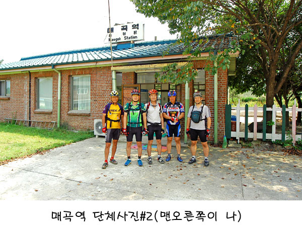 그대로 딴힐하다보면 만나는 콘크리트 포장로 3거리에서 좌측으로 다시 진행하다 갑자기 강릉행 무궁화호 기차행렬을 오른쪽 시야에 들어오면서 매곡역이 눈앞에 반겨준다. 오늘의 중식타임이 시작되었다. 매곡역앞 시원한 숲그늘은 지친 라이더에게는 더할 나위없는 편안한 안식처 였다. 매곡역 앞 작은 구멍가게에는 아들을 외국에 유학보내고 지나가는 라이더에게 정겨운 인사를 건내는 다정한 할머니도 있었다. 우리가 준비하지 못한 깔개, 라면, 식수, 맥주를 모두 가게에서 조달할 수 있었고 전골냄비에 장사장님이 준비하신 당면, 팽이버섯, 불고기를 한가득 넣어 메인반찬으로 하여 흐믓한 점심을 즐겼다.
