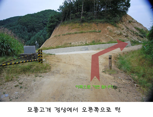 첫 갈림길인 모름고개 정상이었다. 우측으로 진행하면 금왕리쪽으로 진행하게 된다.