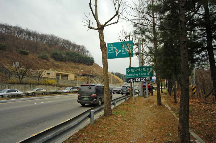 오른쪽으로 진행하며 태재고개를 넘어가는 구도로로 갈 수 있다. 왼쪽에 보이는 도로는 신도로라고 한다.