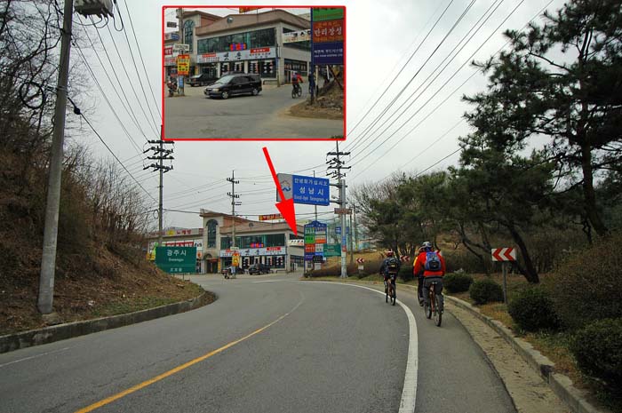 자.. 여기가 태재고개 정상지역이고 화살표로 보이는 곳으로 들어가면 바로 불곡산 입구되겠다. 본 지역은 식당이 많아 마지막 식사때에도 이곳에서 점심을 해결하고 라이딩을 마무리 했다.