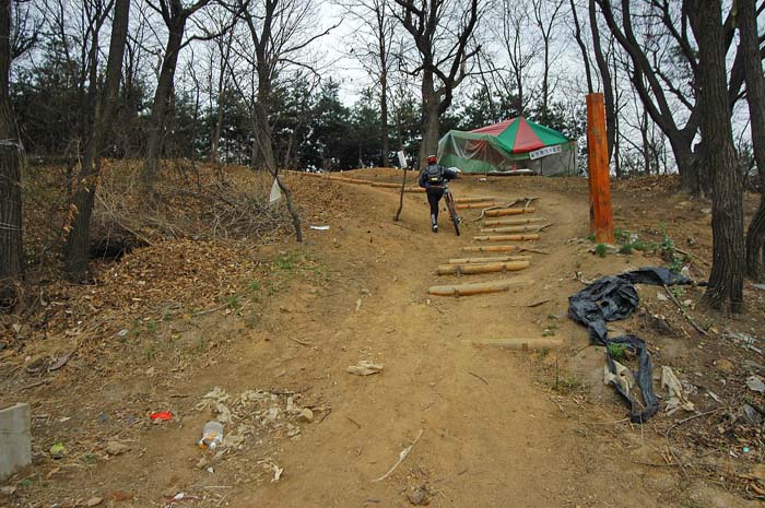 아스팔트 도로가에 바로 이어지는 불곡산입구 계단이다. 오디랠리 하시던분들이 처음 이계단에서 병목으로 인해 모두 끌바하셨다는 곳이다. 난 실력이 안되어 올라가다 결국 끌바.. 이박사님과 김소장님은 여기를 타고 오르신다.. 신월산 효과를 보고 계신듯 하다.. 사진으로 보면 싱거워 보이지만 만만하지는 않았다.^^ 몇번 도전하면 쉬이 오를 수 있을 것 같다.