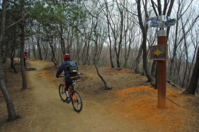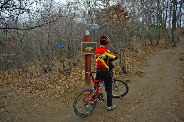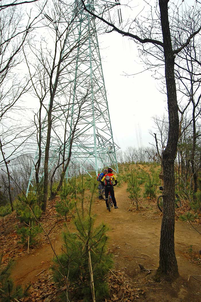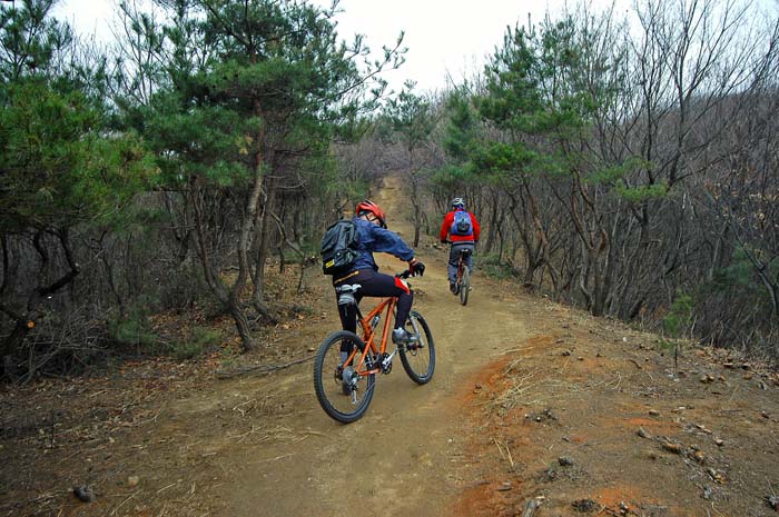 아직 불곡산 정상은 멀었다. 완만하다 급해지고 다시 완만해지는 형국이 반복된다. 그동안 어설펐던 업힐기술이 여실히 뽀록나는 날이다. 앞바퀴 그립을 확보하기 위해 최선을 다해 눌러보지만 번번히 들려 균형을 잃어버린다. 엔진은 되는데 타이어 그립을 잡아내지 못해 너무 아쉽다. 애꿎은 앞샥 탓을 해본다. 에어펌프로 생각없이 보통이상으로 가득넣은 탓에 나의 마조찌 봄버 에어샥은 업힐에서 온몸으로 눌러도 들어가지 않는다..ㅠㅠ 엇저녁에 자기전에 에어를 뽑아 놓는다는게 깜빡해 이런 어려움을 자초한 것이다. 업힐내내 공중으로 부양하는 앞타이어를 잡느라 애먹었다.