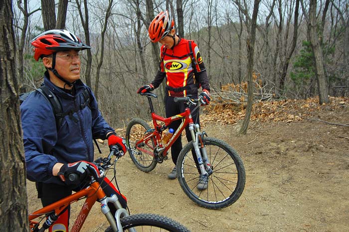 강호익박사님과 이종화박사님.. 강박사님에겐 오늘이 새로장만하신 블러를 테스트하는 날이다. 어제는 오늘 라이딩을 위해 이곳에서 맹연습을 하셨다고 한다. 그래서 인지 오르는 면면에 비장함이 서려계신다. 강철맨 이박사님은 코스를 최대한 즐기고 계신다.