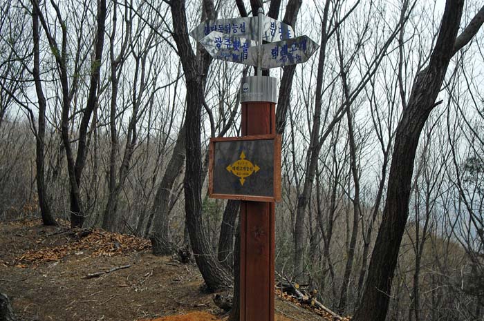 갈림길 곳곳에 이런 자세한 푯말이 세워져 있다. 등산객이며 라이더를 위한 배려가 돋보인다. 태재고개능선이라는 노란색 내용이 보인다.