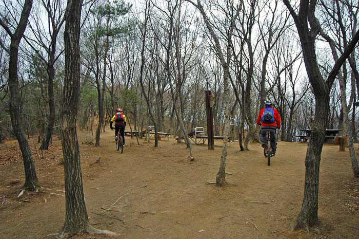 능평리쪽으로 내려왔다. 마지막 10여미터는 나무뿌리 계단에다 미끄러워 결국 들고바이크를 하고 내려온다. 허무하긴 하지만 불곡산을 거쳐 숯돌봉으로 넘어온길은 모처럼만에 다양한 싱글코스를 맛볼 수 있어 이색적이었다. 기회가 되면 조만간에 여러번 다녀봐야 할 것 같다.