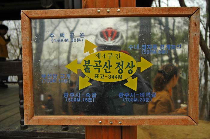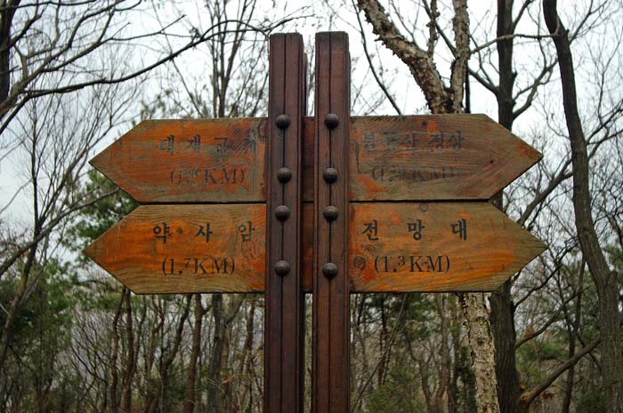 아까 보았던 이정표의 약사암방향에서 초등학생들이 소풍을 나왔는지 우르르 올라온다. 주위는 순식간에 점령당했고^^ 게다가 불곡산 정상으로 모두 향하고 있었다. 그런데 .. 조금씩 빗발이 비치기 시작한다. 오전 비올확률이 30%라고 했는데 우린 운이 없는 것인가?