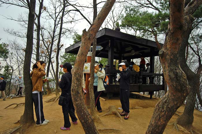 불곡산 정상이다. 호젓하게 정자도 보인다. 등산객의 숫자가 많아졌다. 여러방향에서 오르는 지라 일행이 오르던 입구쪽은 등산객이 많지 않았었다. 정상에 오르자 일행의 오해를 불식시켰다. 간단하게 목을 축이고 이박사님이 주택공원방향으로 길을 잡아 진행한다. 다행히 출발할때 즈음에 초딩들이 우르르 불곡산 정상을 점령중이었다. 조금만 늦었어도 재차 포위(?)당할 뻔 했다.^^