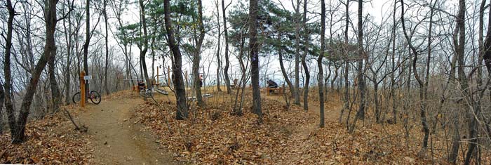 초입이 가파른 주택공원쪽으로 내려서 가다 보면 평평한 산불감시탑지역이 보인다.