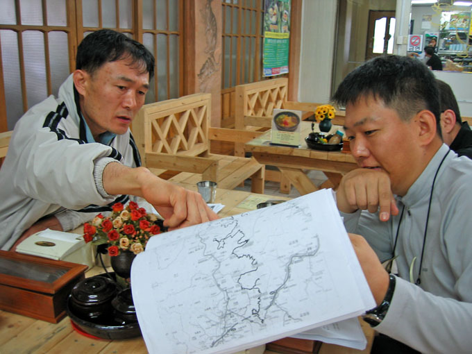 국물한점 남김없이 뚝딱 아침을 해치우고 이박사님과 함께 다음연휴때 예정한 가리왕산 코스에 대해 부지런히 리뷰를 한다. 280랠리를 대비하여 사전 답사겸 주요코스를 미리 돌아보자는 심사였다. 그렇게도 가고파 했던 가리왕산을 드디어 다음주에 가게 된 것이다.