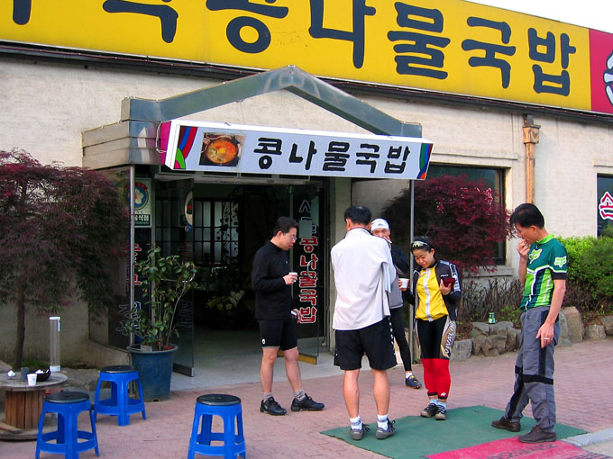 길동사거리에서 아침 6시경에 김랑호를 픽업해서 가락재 휴게소로 바로 출발한다. 인근에서 같이 출발하는 김소장님 일행과 양평근처 콩나물해장국집에서 조인트하여 아침을 해결한다. 집에서 나올때 김밥을 한줄 먹었지만 콩나물해장국은 별미였다.