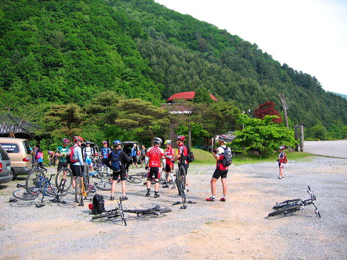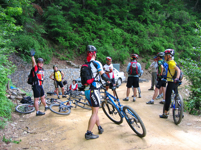 아직까지 모두가 가지않고 기다리고 있다. 늘목고개에서 일단 선두조와 후미조로 나누어 선두조는 완주.. 후미조는 중간탈출(가락재터널쪽으로)하기로 한다. 체력안배를 위한 고려다. 무리하게 진행하다 전체팀의 안전까지 담보해야 하는 상황이라 현명하게 가기로 한다. 모처럼만에 타는 나는 후미조를 맡아 유선생님부자와 무릎이 않좋은 랑호를 데리고 뒤에서 쉬엄쉬엄 진행하기로 한다.