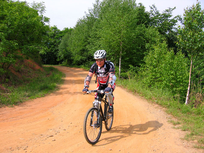 8시 40분경에 라이딩을 시작한다. 일시에 많은 행렬이 가리산 임도입구를 향해 가락재 로드를 내려간다. 초여름이지만 아침 공기는 서늘하기만 하다. 오늘 낮은 더울꺼라는 예상인데 가리산은 수목지대가 많았던 기억이 있어 그다지 햇볕에 고생하진 않을 것 같았다. 휴게소를 출발하여 로드를 1Km가량 내려오면 왼쪽으로 임도입구가 보인다. 흙길이 반갑다. 서서히 임도의 기운을 느끼며 그늘진 숲사이로 난 길을 페달링을 넉넉하게 하며 완만한 2.5Km업힐을 오른다. 초반이라 힘보다는 몸을 풀어야 하기에 rpm을 최대한 올린다. 3주동안 굳어 있던 근육을 깨우고 나니 금새 1C에 도달한다.