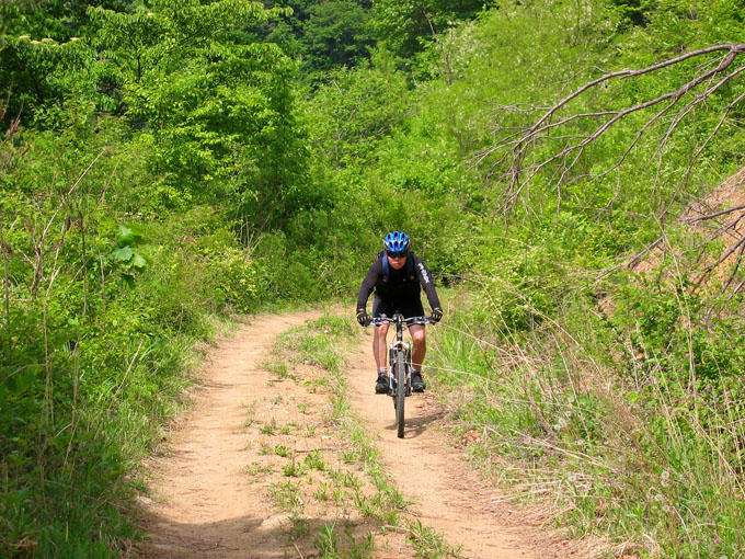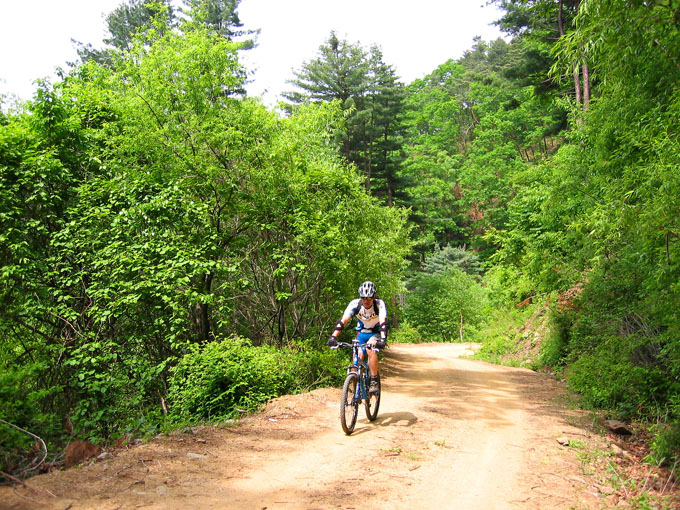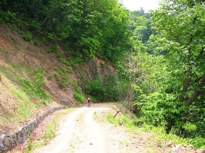 4C까지 이르는 길은 초반 20Km임에도 약간의 업힐후 다운이 혼재되어 있는 서늘한 임도라 쉬지않고 달려도 무난히 갈 수 있는 코스다. 나에겐 모처럼만에 나온 숲, 흙과의 여정이라 마음에 기쁨이 충만하다. 답답했던 요 며칠을 일시에 떨치고 즐거운 마음으로 한구비, 한구비 오른다. 나와 같이 이제서야 몸이 회복된 배상범님 여전히 힘이 넘친다.
