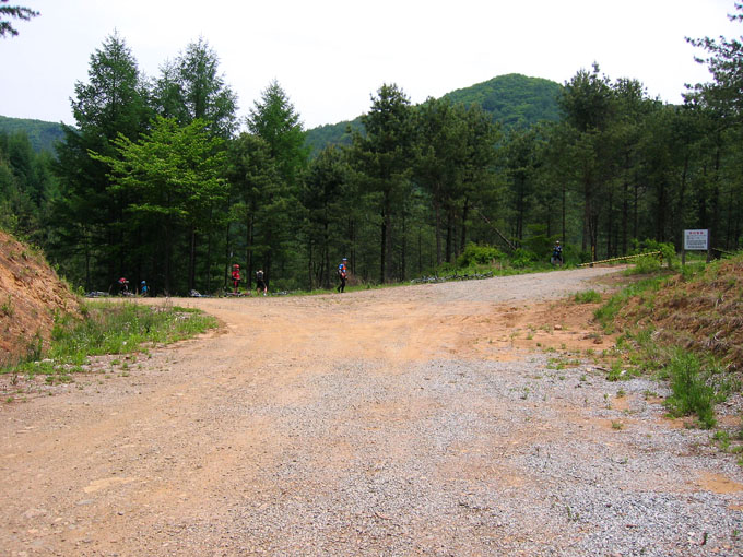 4C(늘목고개)에 도착하니 아무도 출발하지 않고 기다리고 있다. 역시 끈끈한 알샵팀이다. 일행을 향해 힘차게 다운을 하는데 누군가 멀리서 나를 부른다. 에구.. 일행의 모습을 자세히 보니 다른팀(끌바팀이라고 했다.)이었다. 너무 기쁜마음에 눈까지 침침해 진 모양이다. ㅠㅠ 바로옆 다음 진행코스 입구에서 알샵팀이 나를 부른것이다. 당황하지 않은 기색으로 씩씩하게 일행에게 간다.^^ 늘목고개 4거리는 넓기도 하다..
