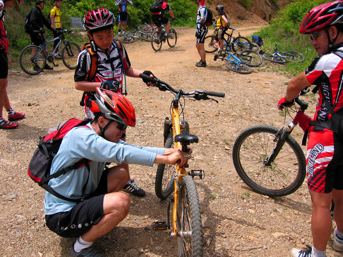 모두 잔차들을 정비하고 분주히 라이딩 준비를 한다. 가져온 기름을 체인에 넉넉히 주고 느슨해진 안장과 드레일러셋팅을 한다. 6주사이에 실습을 통해 다들 정비에 대한 기초지식을 다졌을 것이다.