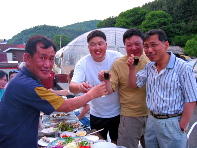 마지막 뒷풀이가 알샵뒤 연병장에서 어김없이 진행되었다. 이교장님은 바베큐 불판에 불을 지피고..