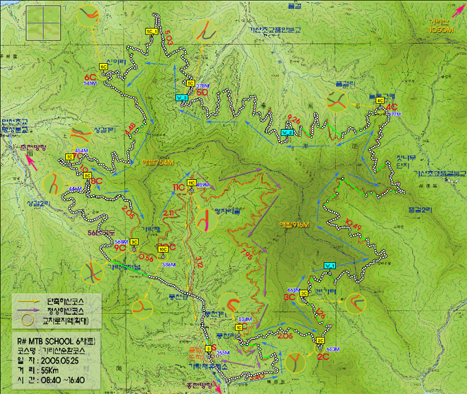 4C에 거의 이를무렵 나보다 뒤에오는 유진복선생님 부자가 궁금하다. 랑호랑 기다렸다 만나서 가기로 해보지만 좀처럼 나타나질 않는다. 유진복jr 성현이가 초반 업힐에서 이미 힘을 많이 소비한 탓일까? 한참을 기다리다 핸펀도 터지지 않는지라 선두일행에게 먼저 가라고 하기위해 일단 랑호를 4C로 보내고 나는 다시 왔던 길을 거슬러 유선생님 부자를 찾아 떠난다. 만일의 경우에 왔던길을 다시돌아 성현과 나만 하산할 각오였다. 유선생님은 졸업생이므로 앞팀과 같이 졸업을 해야 하기에..^^ 하지만 몇구비를 오르다 금새 부자를 만나게 된다. 딴힐길이라 다시 기운이 난단다..^^ 여기서 돌아갈지 진행할지 망설이다 거리계를 보니 어느새 20여키로를 왔다.. 돌아가도 20Km 중간 탈출을 가정하면서 진행해도 20Km다.. 진행하기로 하고 4C로 간다.