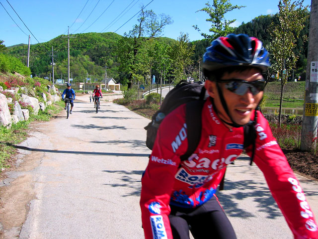 1차 업힐을 무사히 끝내고 다리가 풀려 있는 이수형님한테 과도한 포즈를 요구한다.^^ 내 카메라는 거의 쓰러지기 직전의 라이더를 잡는게 즐겁다.. 아무래도 난 새디한 습성을 가졌나 보다.