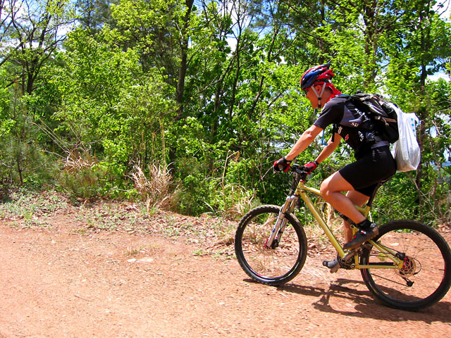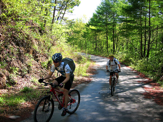 어제 박성준님과의 페이스 조절로 인해 이르지 못한 클린턴 후반부를 오늘은 모두들 여유있게 라이딩한다. 내가 선두에서 느긋하게 인도하는데 임도길이 마치 나를 끌어 당기는 듯하는 느낌이다. 마치 부드러운 비단사이를 누비는 느낌으로 오르락 내리락 한다. 뒤 따라 오는 윤진완님의 임도에 대한 감탄사가 내 맘과 다르지 않다. 나에게 주어진 이 조각같은 기쁨이 어디에 비할 것인가?