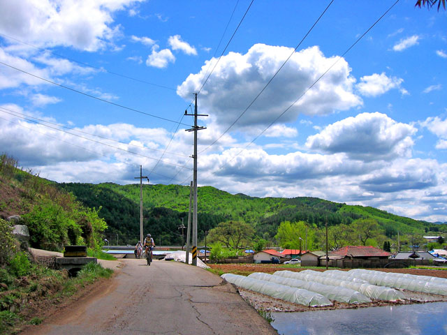 하늘의 뭉게구름이 취해주는 자연산 포즈와 더불어 편안한 전원풍경.. 오늘 하루 라이딩을 대표하는 사진이다.