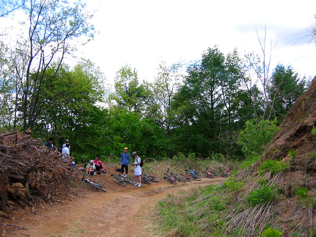1차 정상부는 햇볕이 따갑긴 했지만 빗물이 걷어버린 맑은 대지가 멀리까지 시원하게 보인다. 뭉게구름에 퍼런 하늘아래 햇살가득한 산들은 학생들의 맘을 들뜨게 만든다. 모두에게 도심에서 맛볼 수 없는 새로운 임도라이딩에 대한 감흥이 가득하다. 4기 윤진완님 일행..